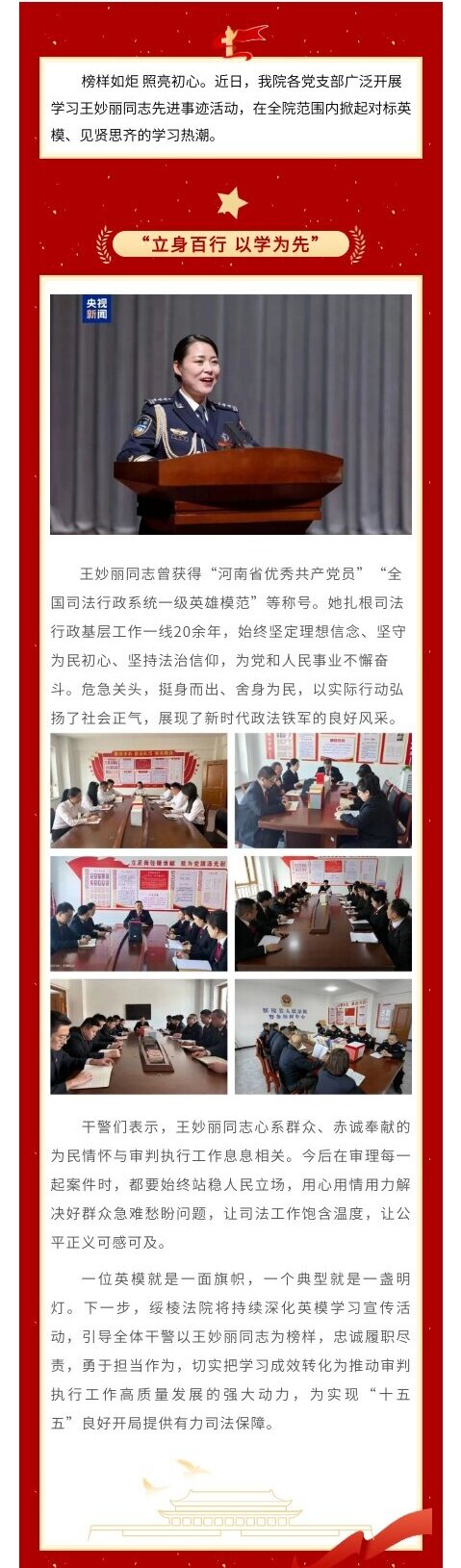 | 首页 法院概况 新闻中心 司法公开 诉讼指南 法学园地 党建专栏 工具书 法苑文化 人民陪审 视频在线 专题报道 民意沟通 困境企业司法挽救 |